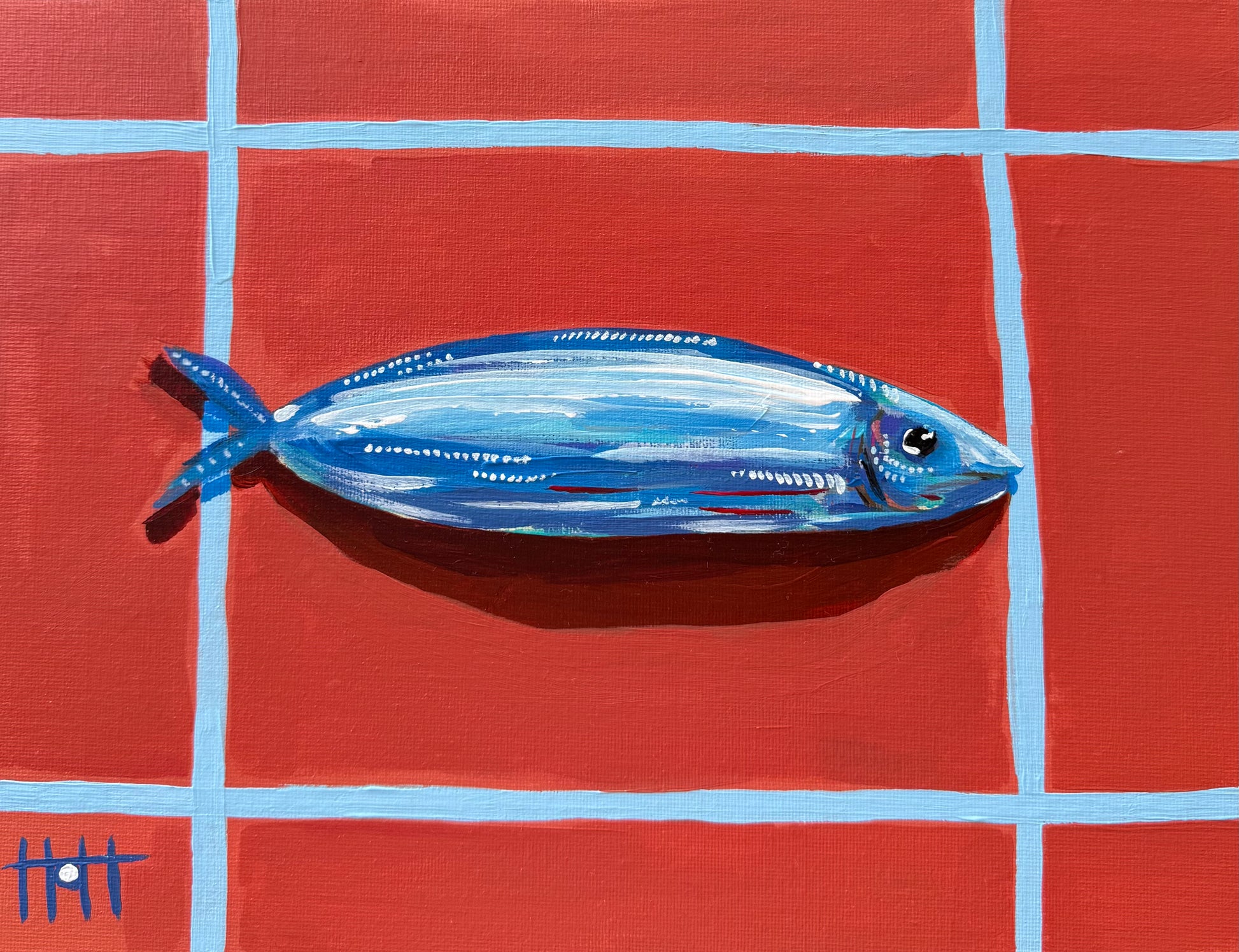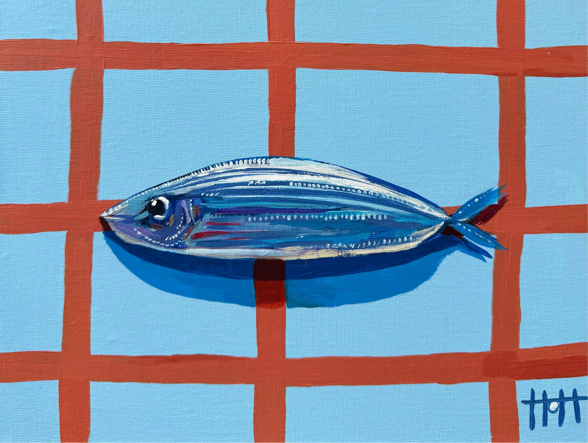 Intended as a two, I was commissioned to paint two fish paintings with complimentary backgrounds.